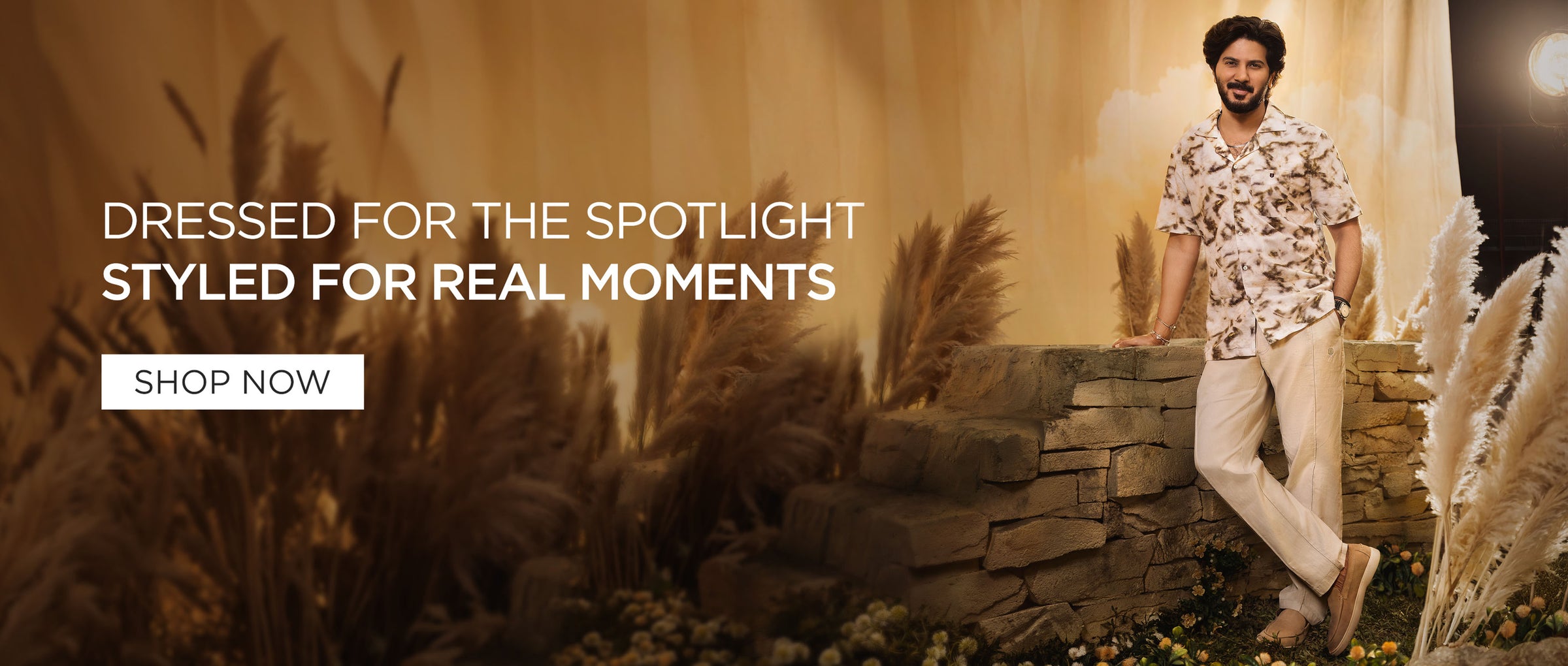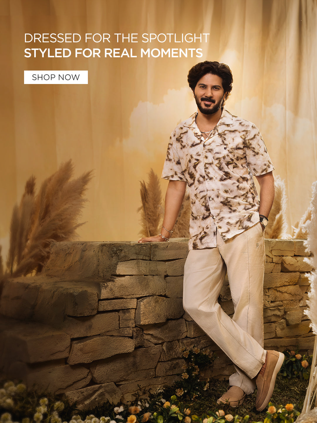 Cream and Brown Semi Casual Printed Shirt