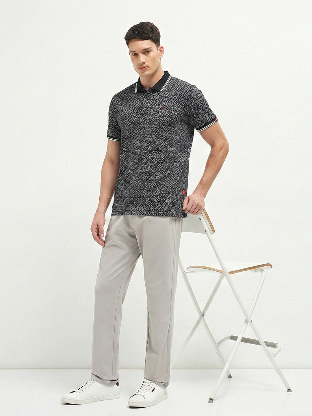 Black Geometric Printed Polo T Shirt