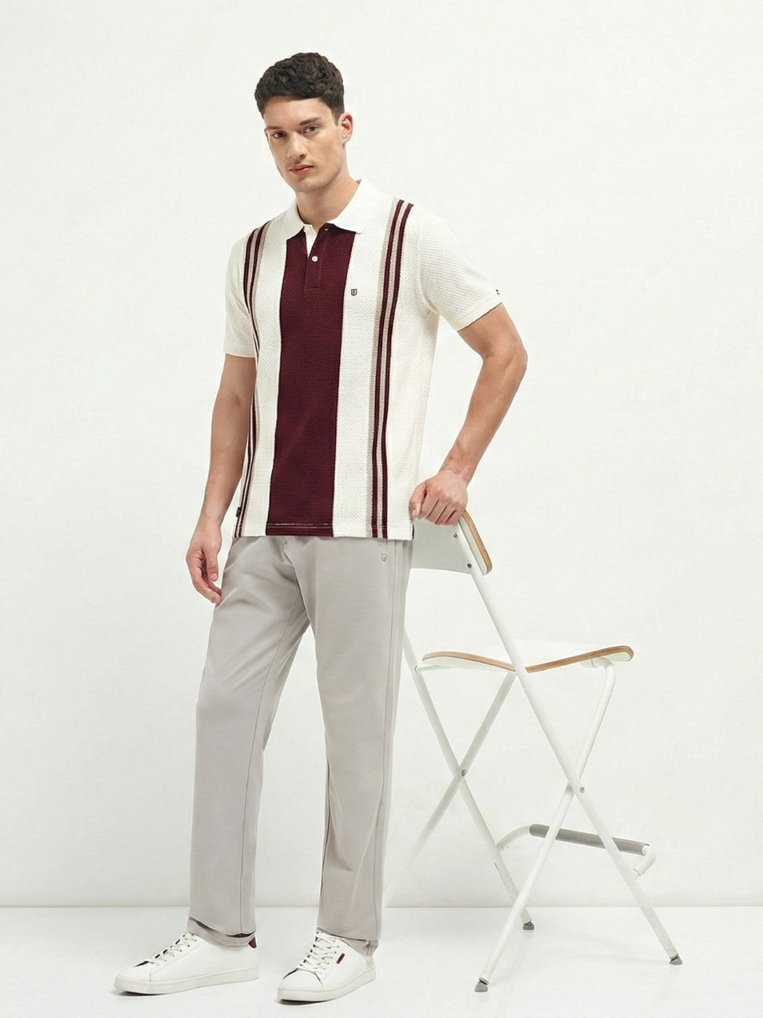Burgundy and Cream Vertical Stripes Polo T Shirt – ottostore.com